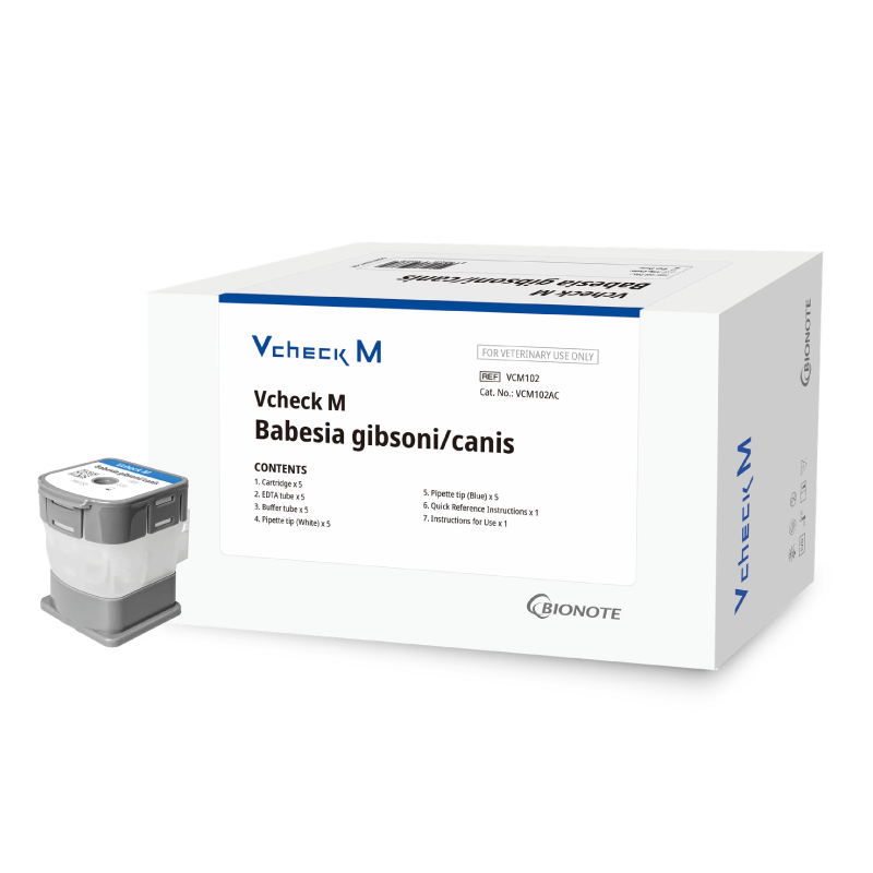 Cartucho de diagnóstico molecular POC para la detección de ADN de Babesia gibsoni/canis en sangre entera canina.