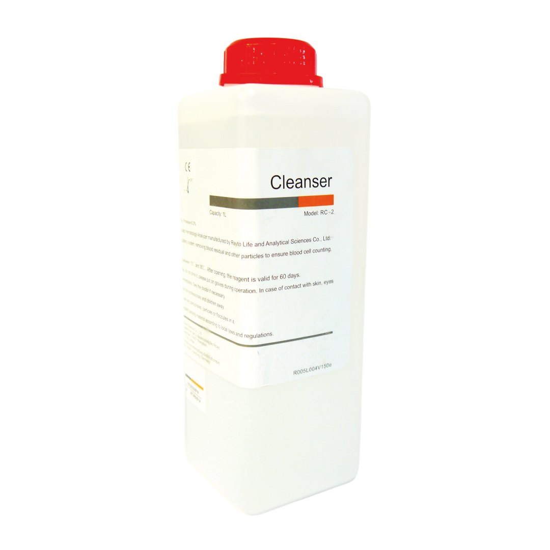 Solución limpiadora utilizada para el mantenimiento interno de analizadores hematológicos, asegurando la limpieza de líneas fluidas y evitando obstrucciones.