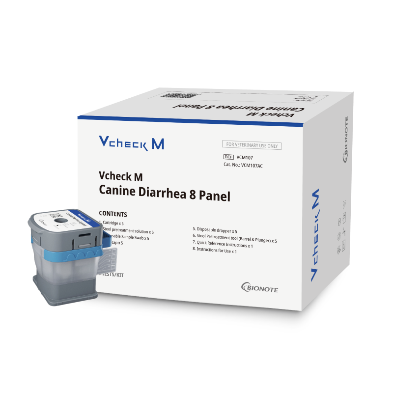 Cartucho de diagnóstico molecular POC para la detección de 8 patógenos causantes de diarrea en heces caninas.
