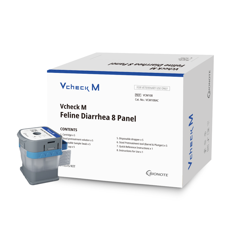 Cartucho de diagnóstico molecular POC para la detección de 8 patógenos causantes de diarrea en heces felinas.